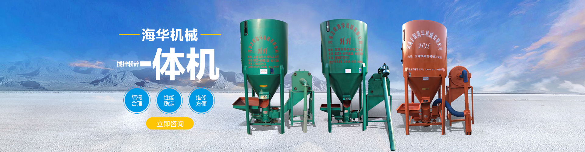 衛(wèi)輝市海華機械有限公司專業(yè)從事料塔料線、飼料攪拌機等方面的研發(fā)廠家,主要生產(chǎn)銷售散裝料塔、不銹鋼攪拌機、臥式攪拌機、小型飼料粉碎機、顆粒機、混合機等飼料機械設(shè)備。